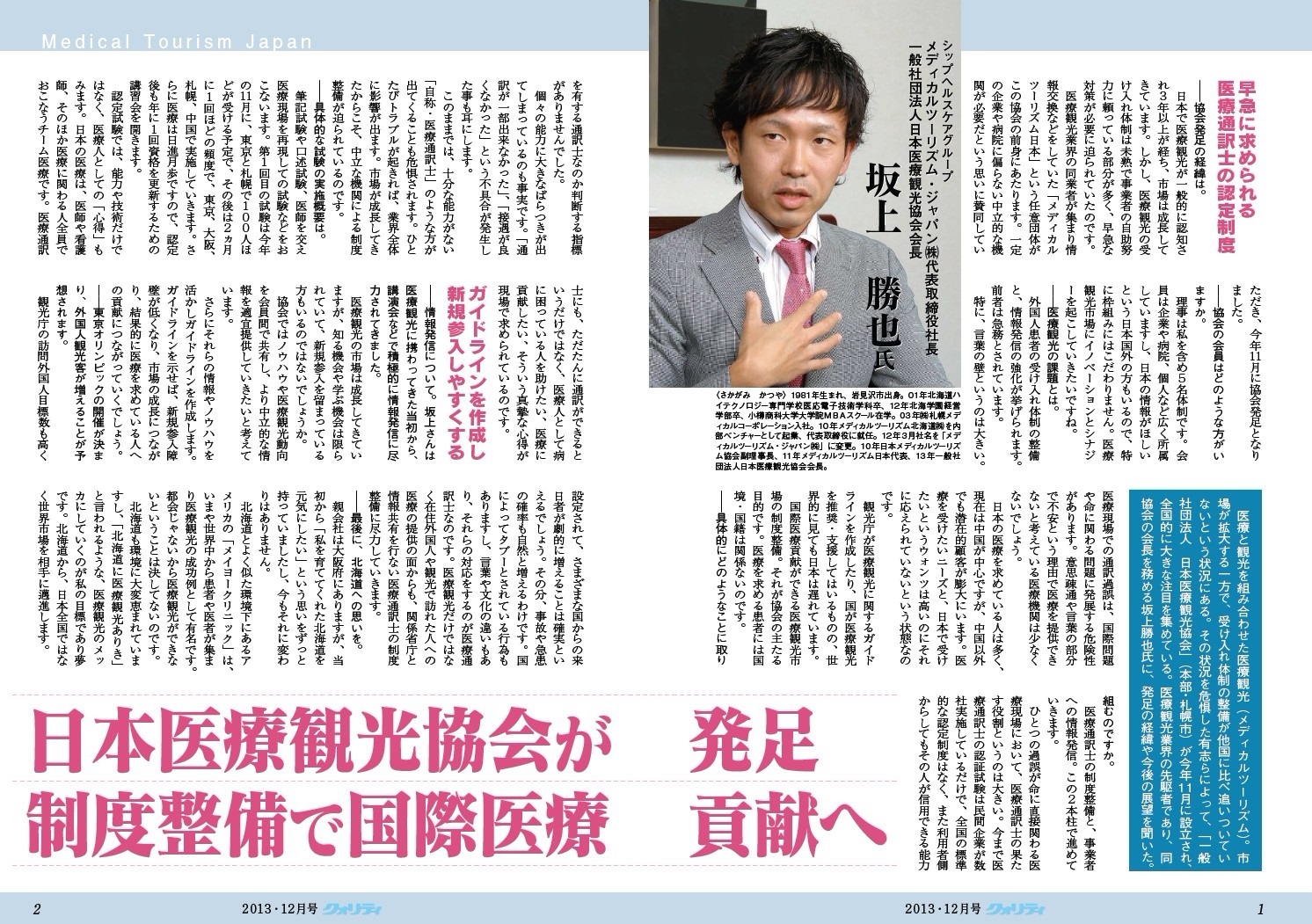 当社( メディカルツーリズム・ジャパン株式会社 坂上勝也 )がクオリティ12月号に掲載されました。